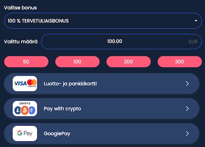 | Maksut: | Pankkikortit, kryptot, GooglePay 🟡 |