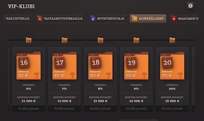 - Kerrytä VIP-pisteitä panostuksista